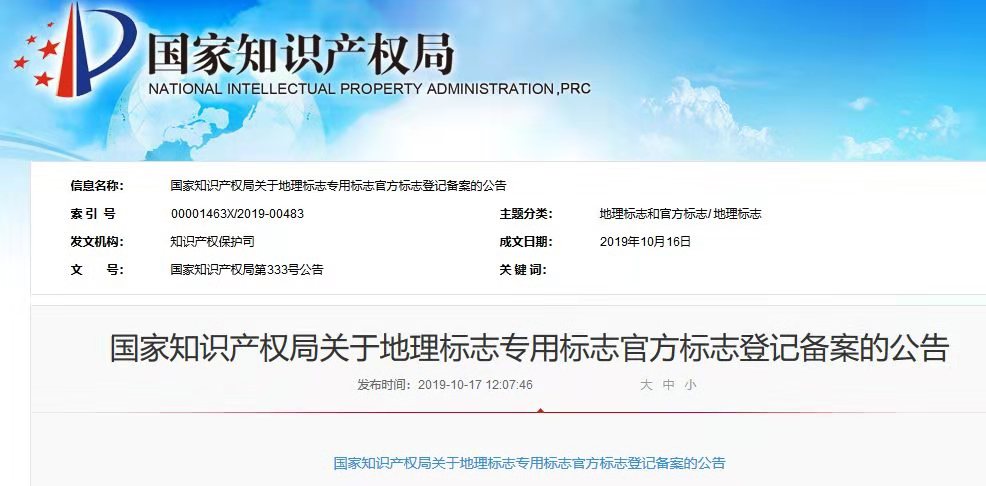 焦點(diǎn)——國知局發(fā)布“地理標(biāo)志專用標(biāo)志公告”