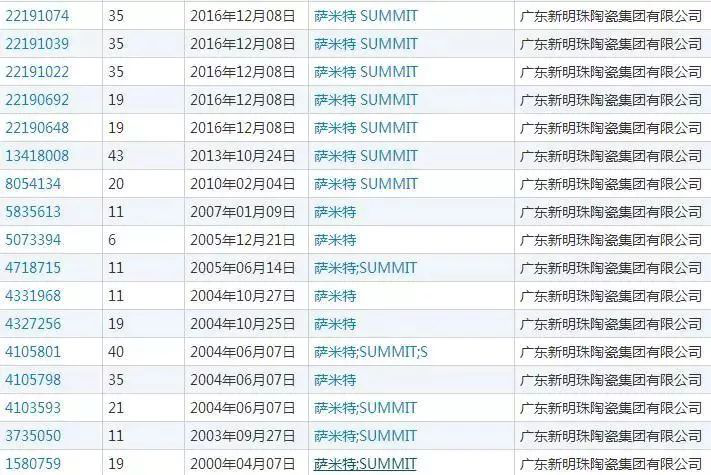 所幸,新明珠陶瓷集團雖然沒有注冊“薩米特”商標,但早在蘇益和搶注商標之前,對設計完成的“薩米特”商標圖形進行了版權登記,并獲得版權登記證書。新明珠陶瓷集團以蘇益和注冊的商標侵犯了其在先版權,向國家商標局提出異議,提交了其登記的薩米特圖形的版權證書作為證據(jù),證明新明珠在蘇益申請商標前,已獲得薩米特圖形的版權。最終,蘇益和所注冊的薩米特商標被撤銷。之后,新明珠陶瓷集團分別在第6類、第11類、第19類、第20類、第21類、第35類、第40類、第43類上申請注冊“薩米特SUMMIT及圖”商標,以保護商標合法權益。