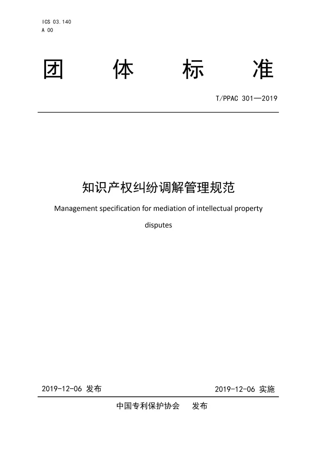 T/PPAC 301-2019 知識(shí)產(chǎn)權(quán)糾紛調(diào)解管理規(guī)范